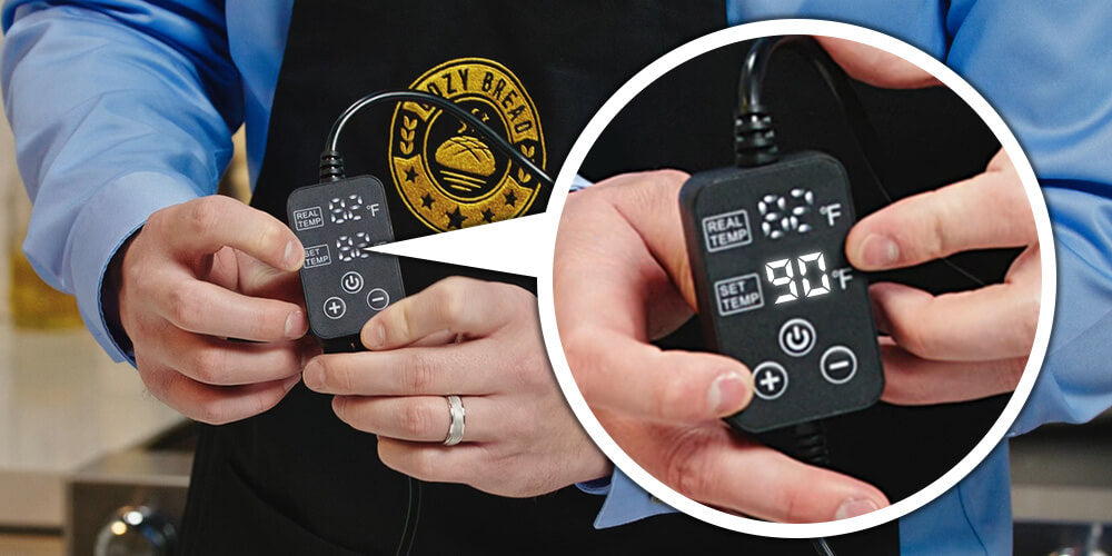 Step 5Adjust the temperature to 10°F higher than your desired proofing temperature. Our baker sets the mat to 90°F for sourdough.