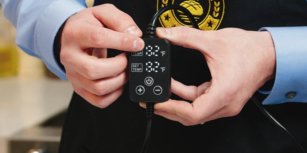 Step 4Power on the Proofing Mat by plugging it and pressing the power button. Set the temperature with the +/- buttons. It will take 3-5 minutes to reach the set temperature.