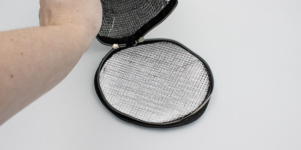 Unzip both ends of the insulated cylinder and lay it flat with the flap facing up.