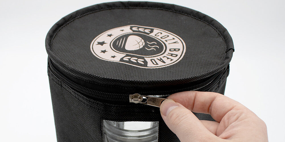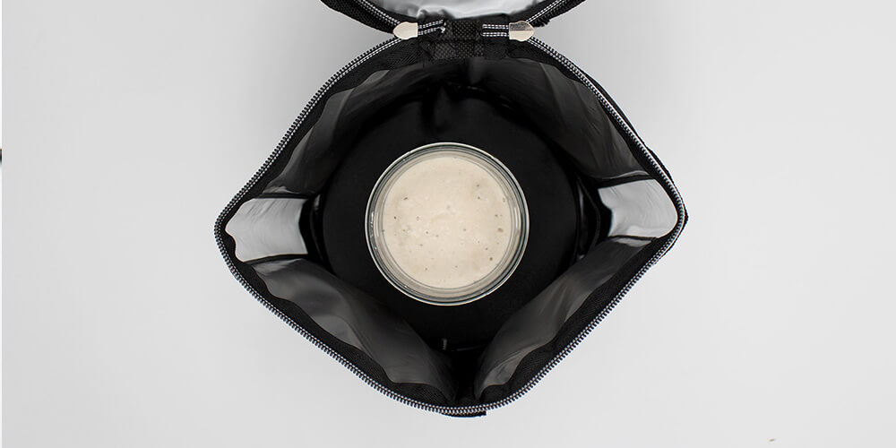 Fold down the top flap of the cylinder to enclose the jar and retain warmth.