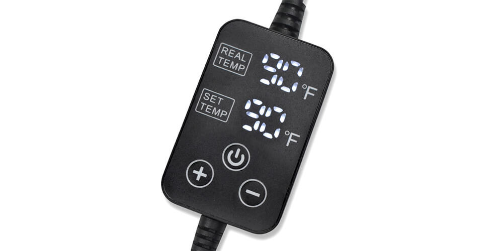 Plug the mat into a wall outlet and use the controller to set the temperature in 1°F increments.